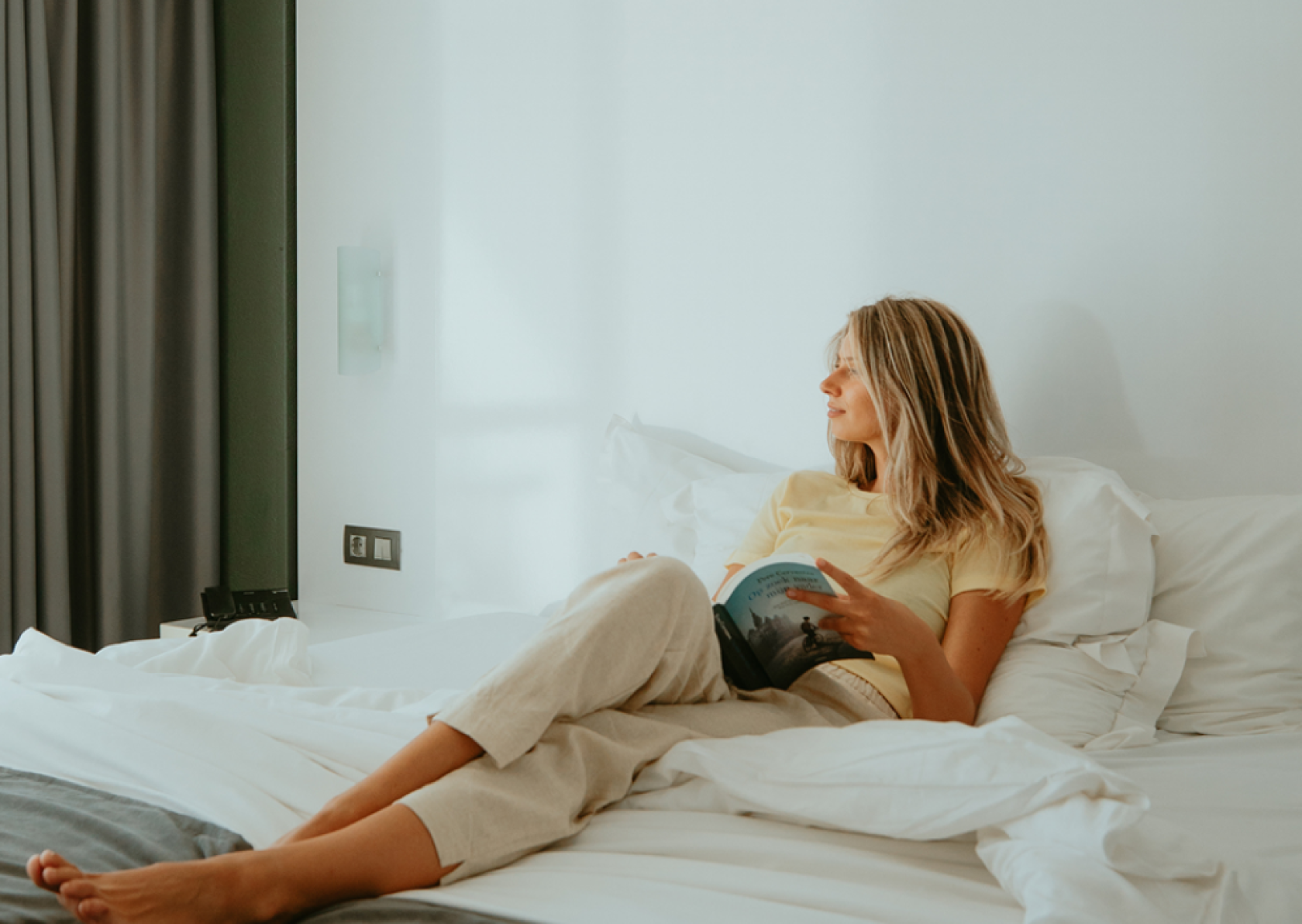 En esta habitación, además de contar con un espacio de relax, podrás disfrutar del balcón y de vistas a la piscina.